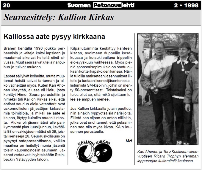 Lähde: Suomen Petanque-lehti 2/98, Mikko Haljoki